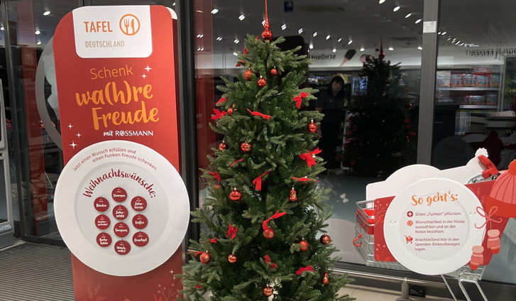 Anzeige: ROSSMANN | Aktuelles Über uns Verantwortung Aktuelles Aktionen Kontakt „Schenk wa(h)re Freude“: Mit ROSSMANN und den Tafeln gezielt Armut begegnen Im Zentrum der diesjährigen „Wunscherfüller“-Aktion von ROSSMANN steht die Unterstützung für Menschen, die in Deutschland von Armut betroffen sind und auf die Hilfe der Tafeln angewiesen sind. Knapp 800 ROSSMANN-Filialen rufen bundesweit dazu auf, im Rahmen des eigenen Einkaufs Alltagsprodukte zu spenden. Hinter den Sachwünschen der Tafeln verbergen sich oft ganz basale Bedarfe – Kaffee, Hygieneartikel oder einfache Haushaltshelfer –, die für viele nicht selbstverständlich sind, aber einen echten Unterschied machen. Das Prinzip ist bewusst niederschwellig gehalten: An den Aktionsaufstellern können Wunschzettel, gestaltet als „Funken“, gepflückt werden, denen ein Produkt zugeordnet ist. Diese Artikel werden beim Bezahlen einfach dazugelegt und anschließend als Spende in einen vorgesehenen Einkaufswagen platziert. Die gespendeten Artikel werden am Aktionsende direkt von den Filialen an die örtlichen Tafeln übergeben. Die soziale Dimension der Aktion hebt auch Andreas Steppuhn, Vorsitzender von Tafel Deutschland, hervor: „Die ,Wunscherfüller‘-Aktion setzt ein starkes Zeichen des Miteinanders: Wer beim Einkaufen an andere denkt, leistet einen wichtigen Beitrag für Menschen, die sich das Nötigste oft nicht leisten können. Jede einzelne Spende hilft den Tafeln dabei, die deutschlandweit 1,5 Millionen Tafel-Kundinnen und Kunden zu unterstützen und ihnen ein Stück Weihnachten zu schenken. Herzlichen Dank an ROSSMANN und seine Kundinnen und Kunden für diese wichtige Unterstützung.“ Durch die langjährige Zusammenarbeit von ROSSMANN und den Tafeln wird gesellschaftliche Verantwortung konkret gelebt. Gerade in Zeiten steigender Lebenshaltungskosten soll die „Wunscherfüller“-Aktion zeigen, wie einfach und wirksam Engagement für armutsbetroffene Menschen sein kann – und wie gemeinschaftlich es gelingen kann, ein Stück Würde und Freude zurückzugeben. Weitere Informationen zur Aktion, teilnehmenden Filialen und Hintergründen Wenn du Fragen oder Vorschläge hast, mehr Informationen benötigst oder einfach so mit uns ins Gespräch kommen möchtest: Schreibe uns! Nachricht schreiben